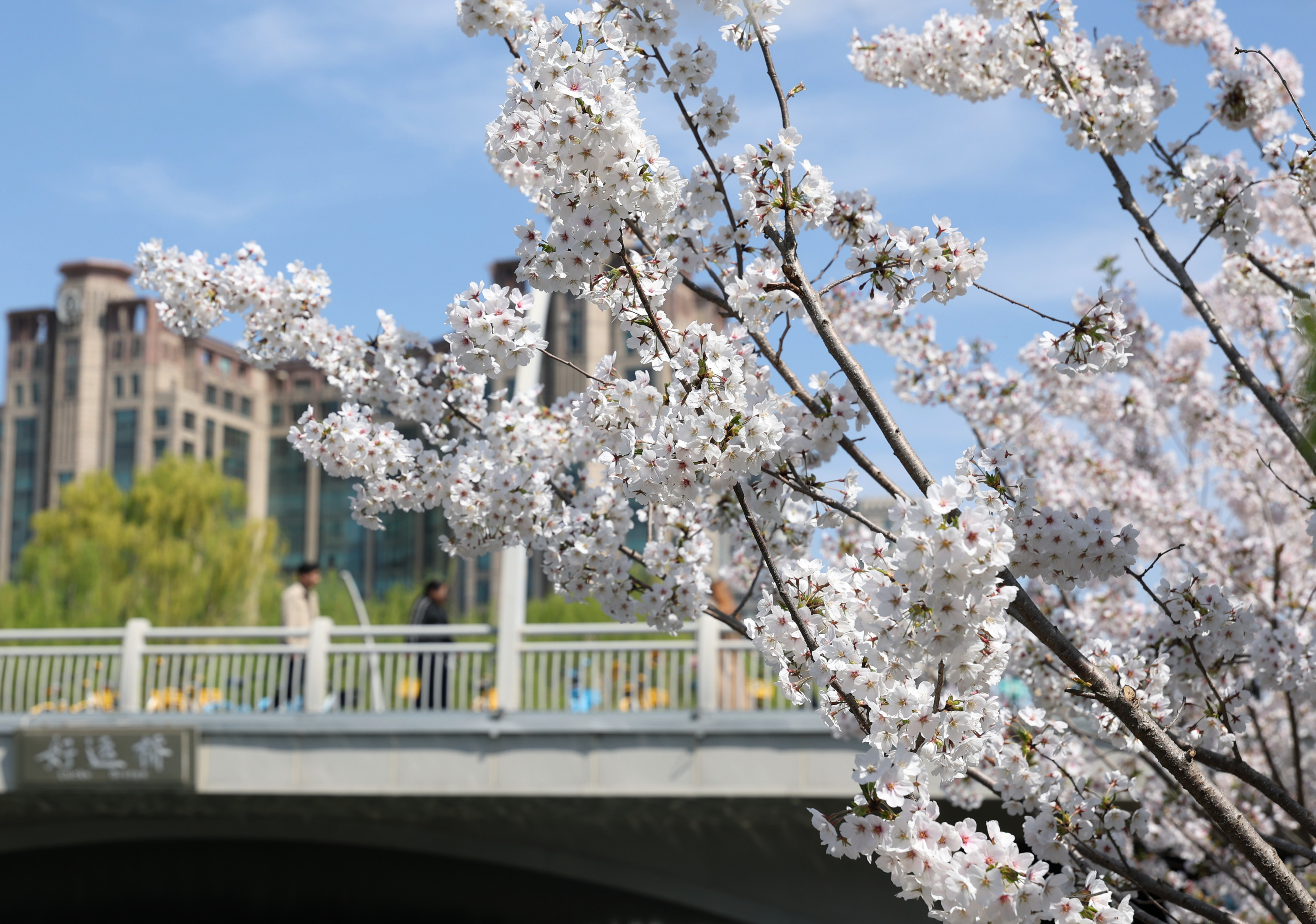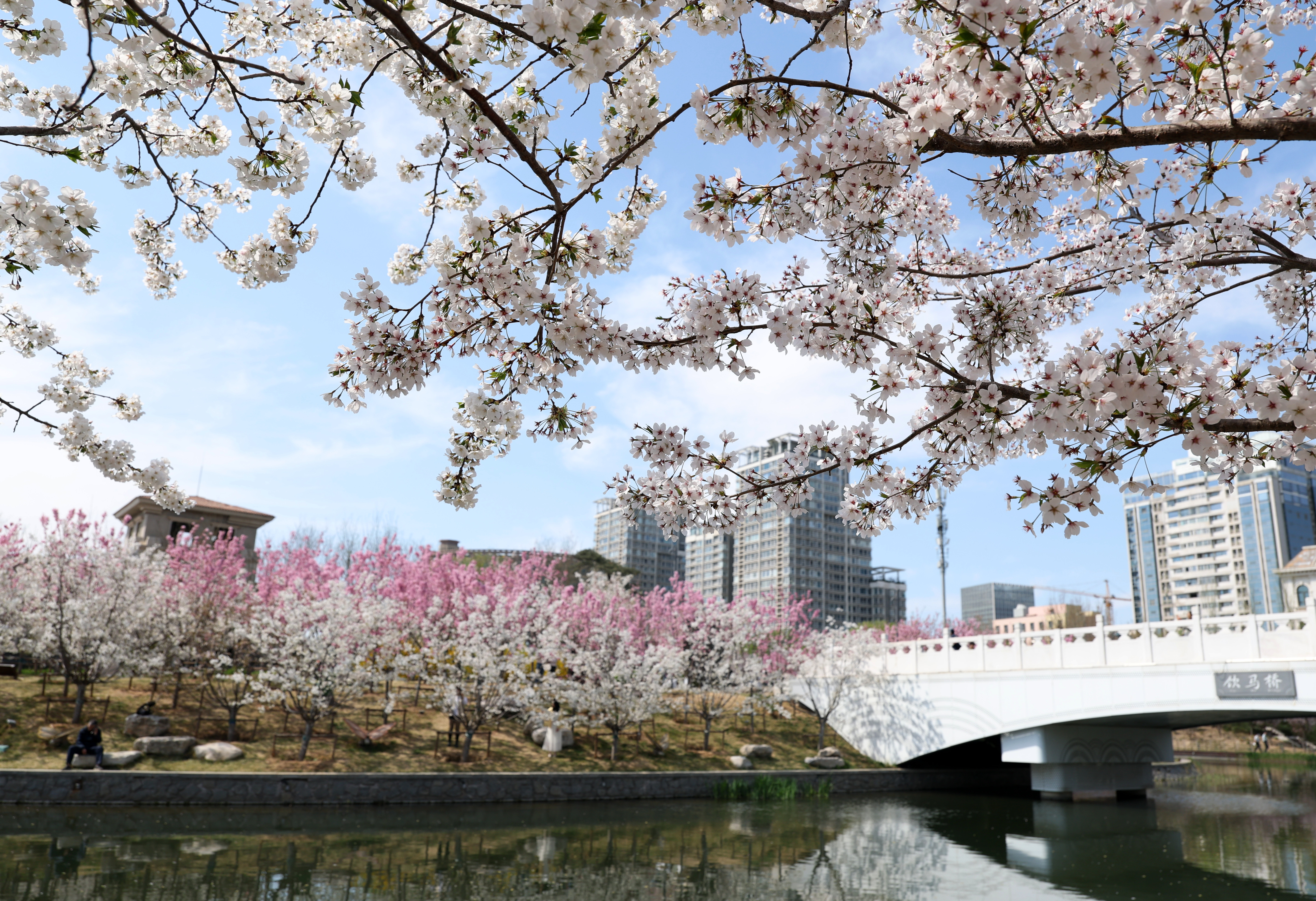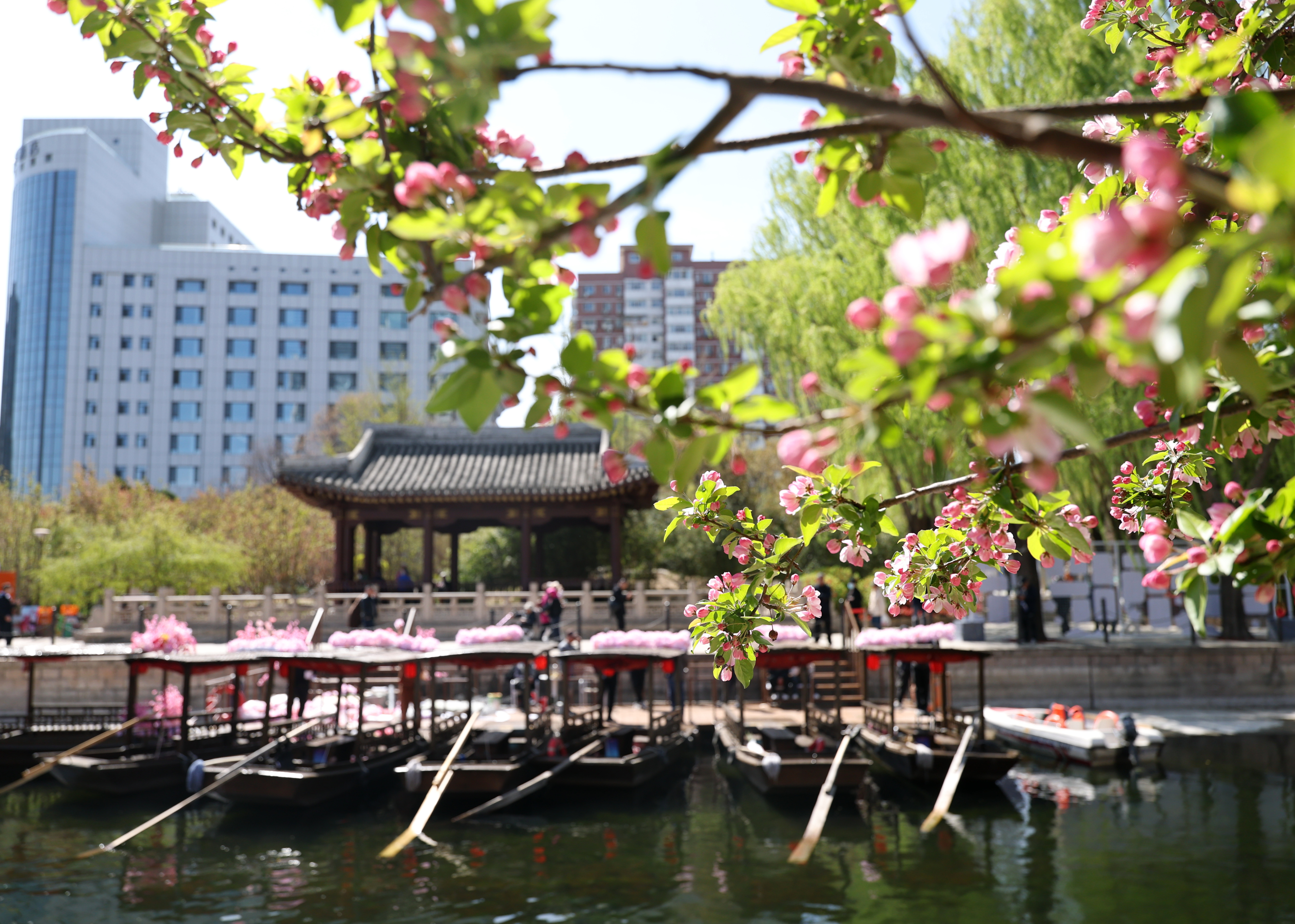 北京朝阳区亮马河边鲜花盛开(4月1日摄)。新华社记者 张晨霖 摄