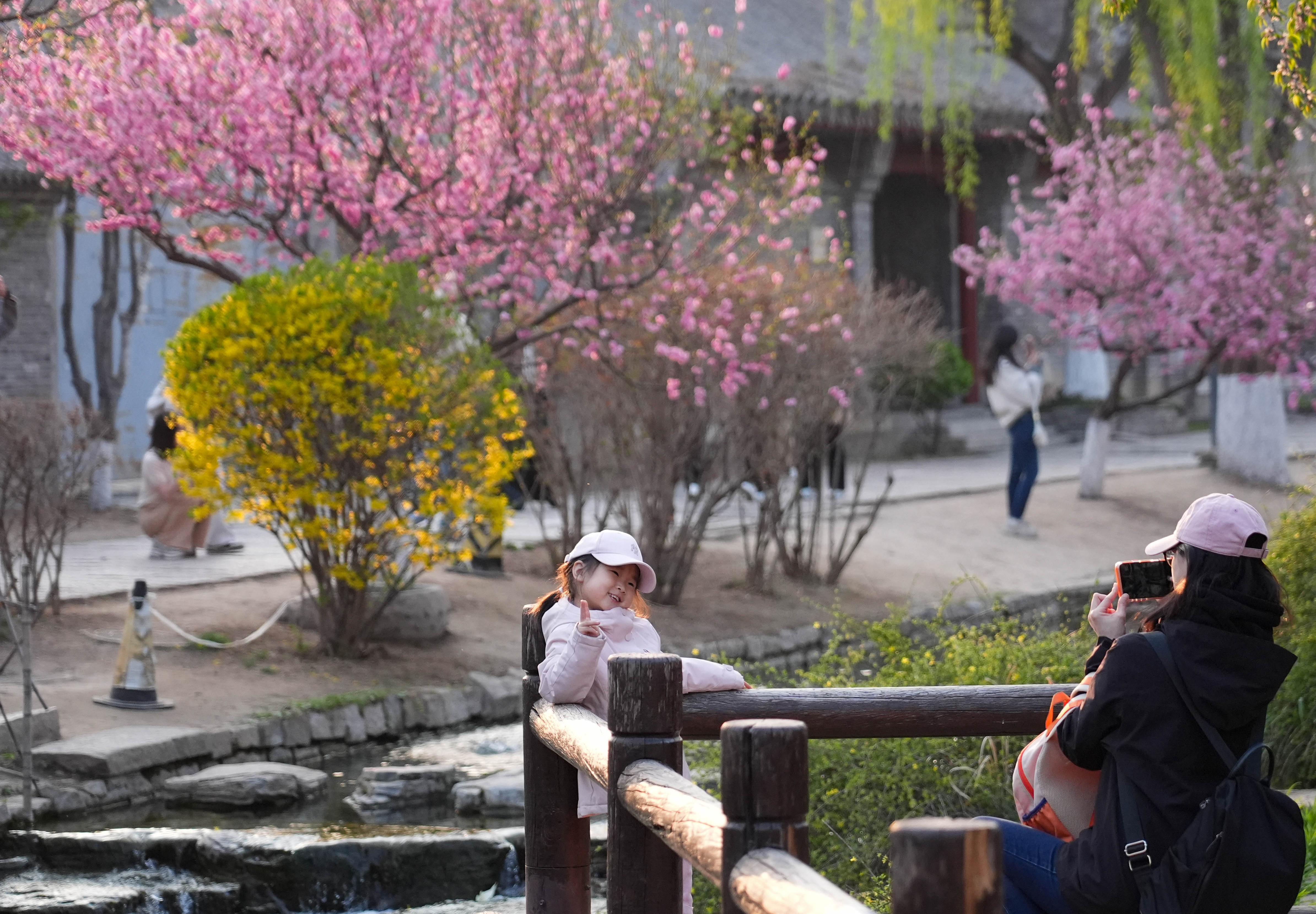 3月31日,游客在北京三里河公园拍照。新华社记者 谢晗 摄